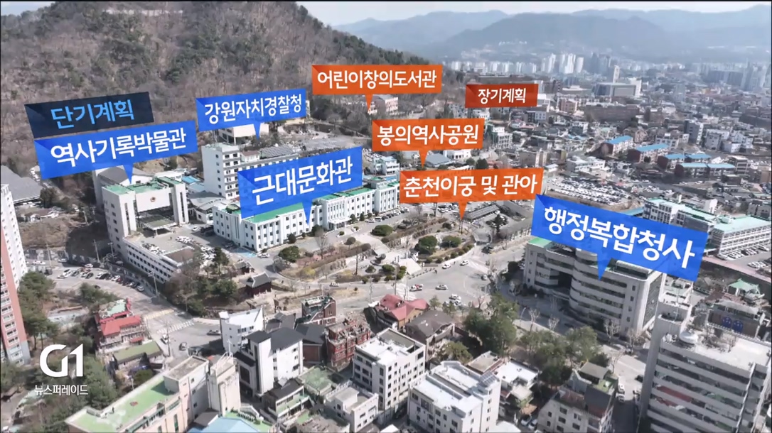 /현재 민원실 등으로 활용 중인 별관은 철거하고, 옛 춘천이궁과 조선시대 관아를 재현하는 한편 이궁 위쪽으로는 봉의 역사 공원을 만듭니다./