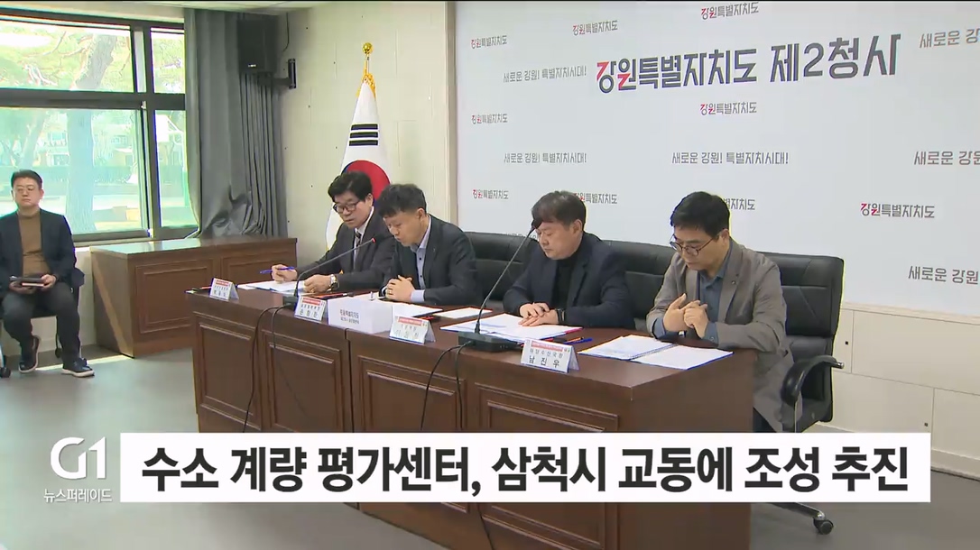 손창환 글로벌본부장은 수소 산업 육성을 위한 핵심 사업인 수소 계량 평가센터를 오는 2028년까지 삼척시 교동 일대에 190억 원을 투입해 조성한다고 밝혔습니다.