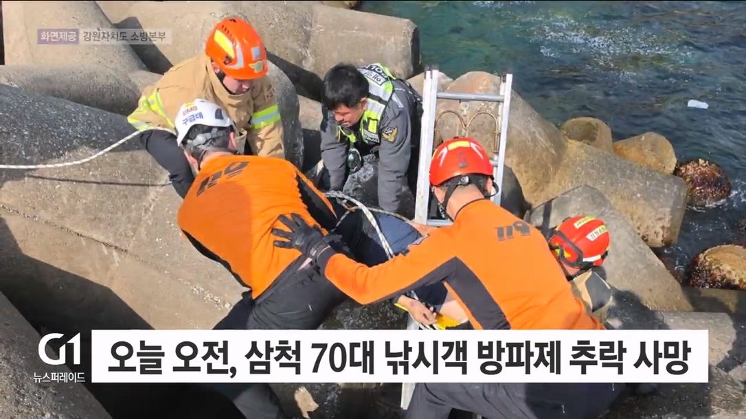 오늘(14일) 오전 9시쯤 삼척시 원덕읍의 한 방파제에서 70대 남성이 3m 높이의 테드라포드 사이로 떨어졌습니다.