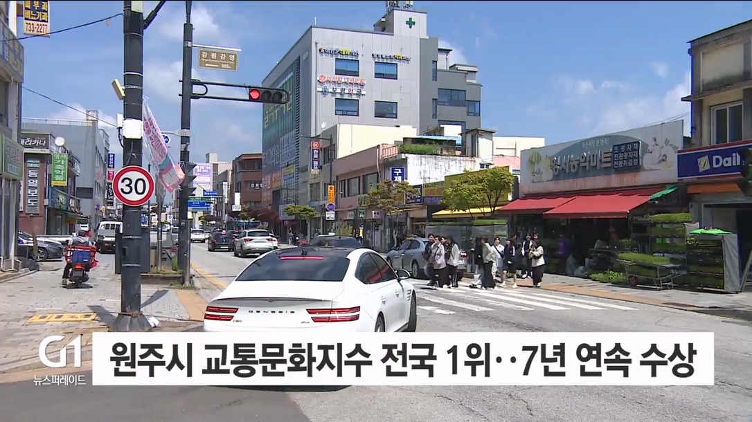 원주시가 국토교통부와 한국교통안전공단이 주관하는 교통문화지수 실태조사에서 우수 지자체로 선정돼 국토부 장관상을 수상했습니다.
