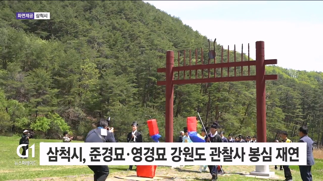 삼척시가 오늘(20일) 국가지정 사적인 준경묘와 영경묘 일원에서 강원도 관찰사 봉심 재연 행사와 쳥명제를 개최했습니다.