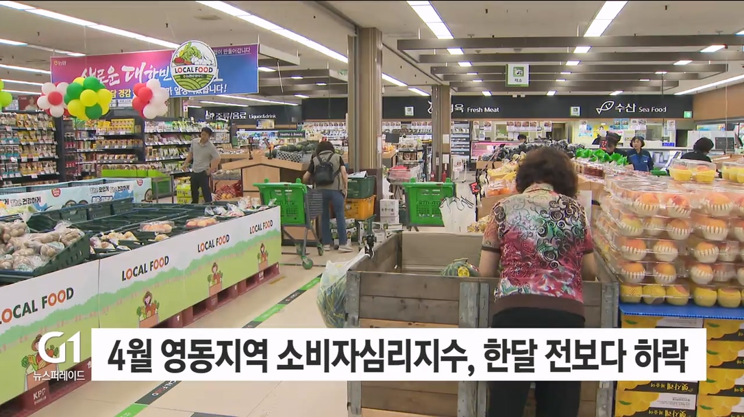 이번달(4월) 영동지역 소비자의 경제상황에 대한 심리를 종합적으로 나타내는 소비자심리지수가 한 달 전 보다 소폭 떨어진 것으로 조사됐습니다.