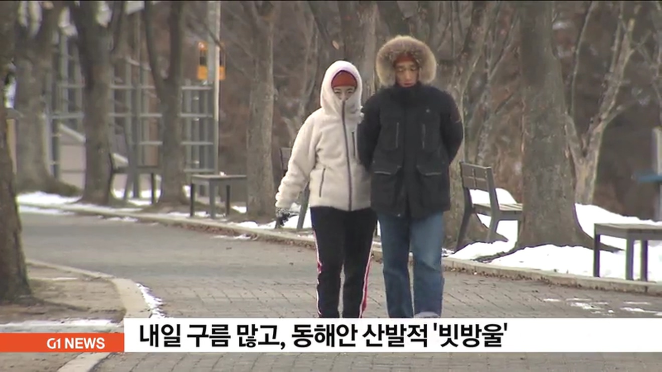 내일 강원도는 오후부터 구름이 많아지겠고, 동해안 지역은 오후부터 밤 사이 산발적으로 빗방울이 떨어지는 곳이 있겠습니다.