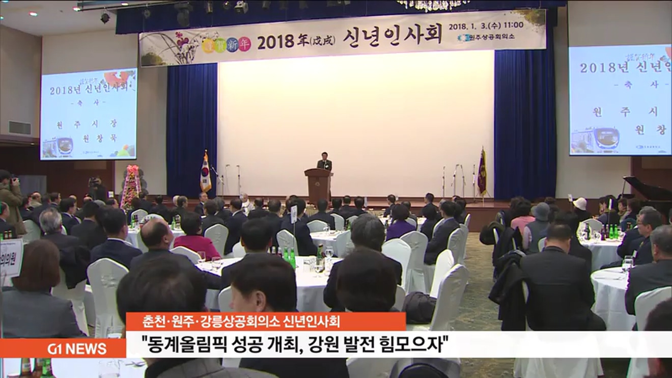 춘천상공회의소는 춘천 스카이컨벤션홀에서 기관 단체장과 각계 대표 등이 참석한 가운데 신년인사회를 열고, 동계올림픽 성공 개최 등 올 한해 강원도 현안 해결에 힘을 모으기로 했습니다.