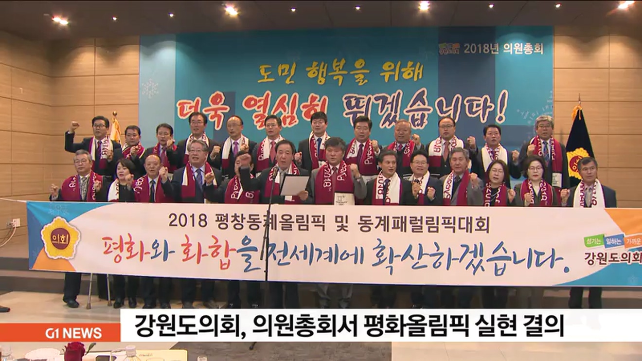 도의원들은 또 평화올림픽 실현 결의대회를 열고, 평창 동계올림픽이 한반도의 평화, 동북아의 평화, 세계 평화를 위한 기회가 되어야 한다면서 북한 선수단이 금강산 육로로 올림픽에 참여할 것을 강력히 촉구했습니다.