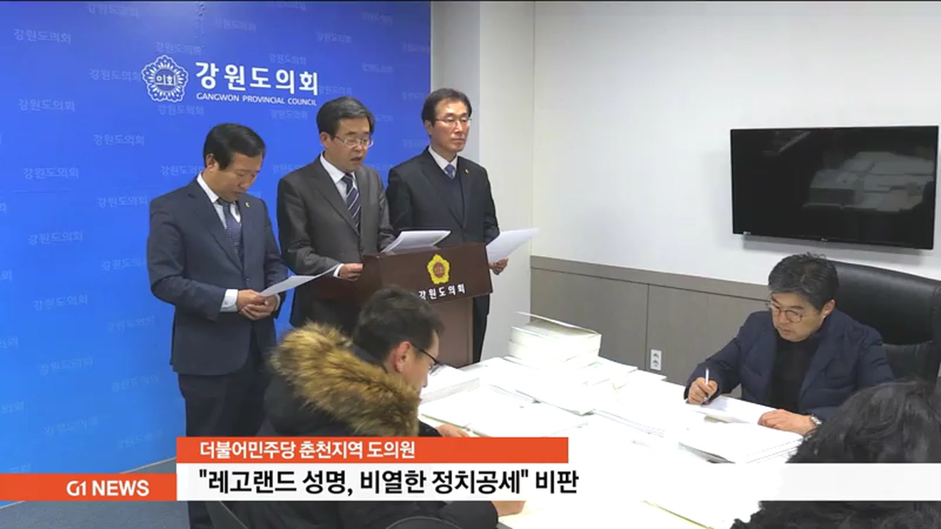김진태 국회의원과 일부 자유한국당 의원들이 발표한 레고랜드 성명과 관련해 오늘 더불어민주당 소속 의원들이 성명을 내고 비열한 정치공세라고 주장했습니다.