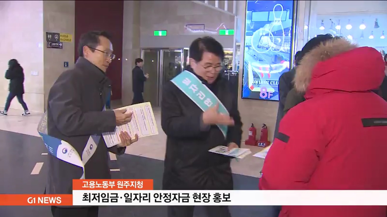 원주고용노동청은 오늘 원주시외버스터미널 일대에서 최저임금 준수 필요성을 설명하고, 영세사업자의 인건비 부담을 덜어주는 일자리 안정자금을 홍보하는 캠페인을 벌였습니다.