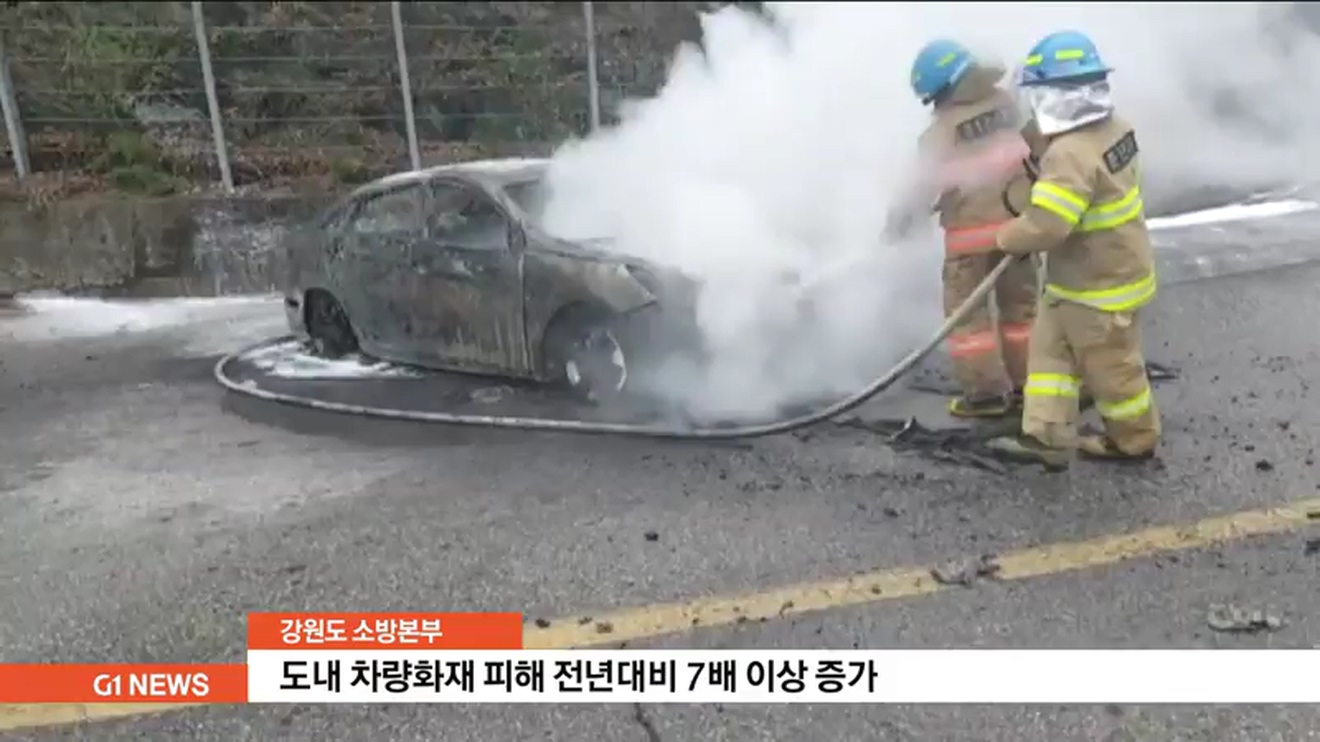 강원도 소방본부에 따르면, 지난해 11월부터 13일 현재까지 도내에서는 모두 58건의 차량화재가 발생해 3명이 다치고, 11억 6천여만원의 재산피해가 난 것으로 집계됐습니다.