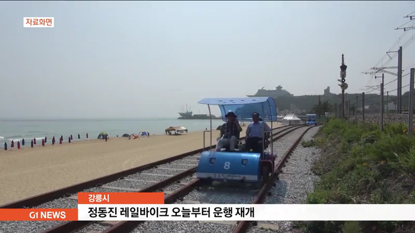 강릉시는 코레일 등과 함께 지난해 말 해안 침식에 따른 피해 복구공사를 마쳤으며 안전 검사와 시험 운행을 거쳐 오늘부터 정동진 레일 바이크의 운행을 재개한다고 밝혔습니다.