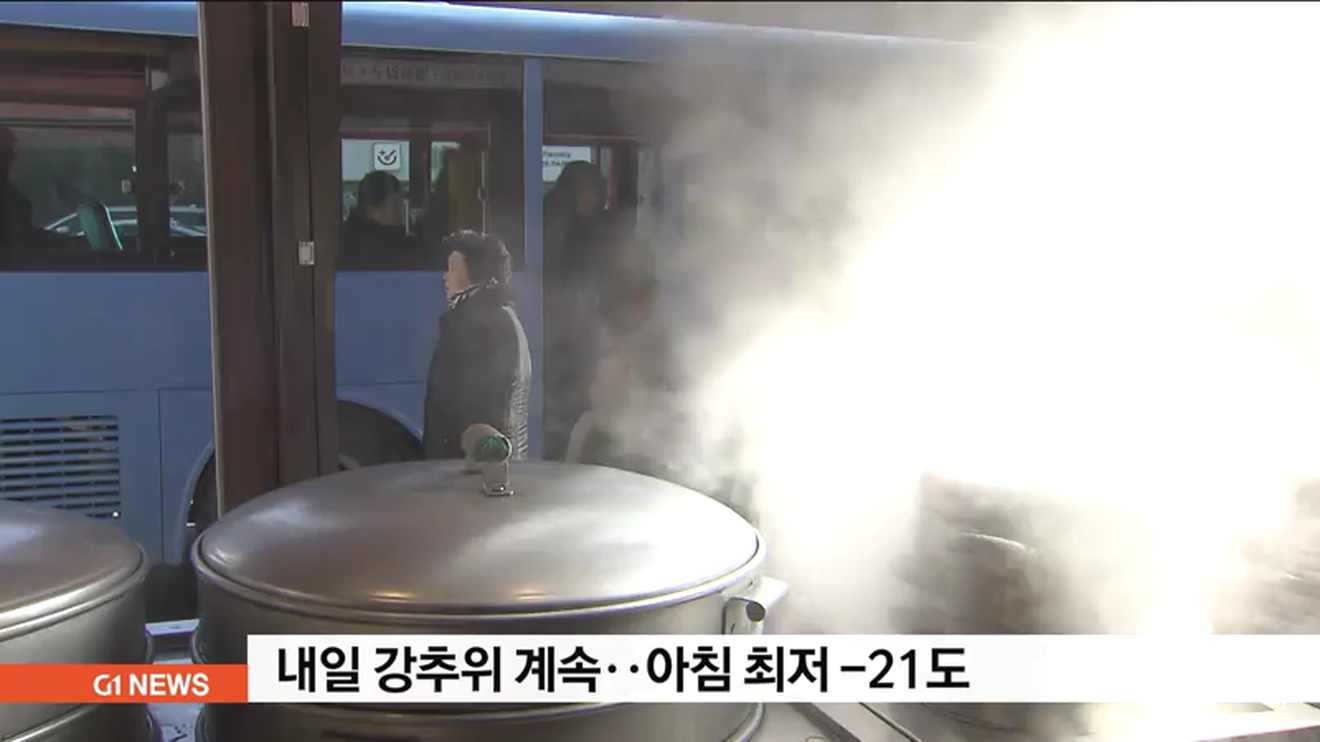 아침 최저기온은 영서지역이 영하 21도에서 영하 15도, 영동지역은 영하 12도에서 영하 10도 분포를 보이겠고, 낮 최고기온은 영하 11도에서 영하 3도로 오늘과 비슷하겠습니다.
