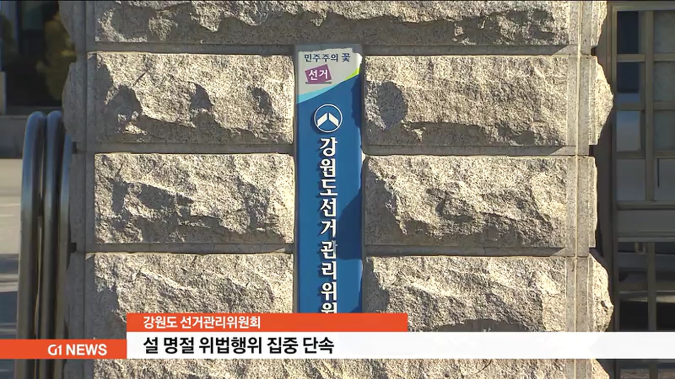 강원도 선거관리위원회는 설 명절 연휴 기간, 행사나 모임에 참석해 금품이나 음식물을 제공하는 행위를 비롯해 경로당과 노인정 선물 제공, 현수막 게시와 지지 부탁 인사장 발송 등에 대한 단속을 강화한다고 밝혔습니다.
