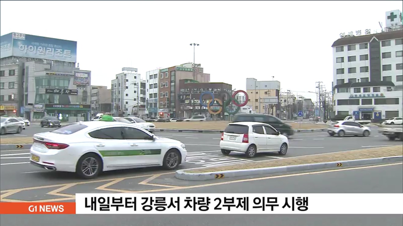 내일부터 올림픽 빙상 경기 개최도시인 강릉시 동 지역에서 차량 2부제가 의무적으로 시행됩니다.