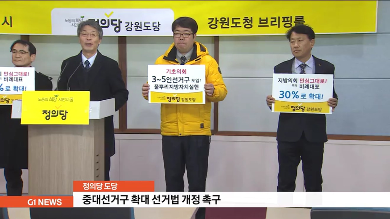 정의당 도당은 도청에서 기자회견을 갖고, "현행 선거제도는 지역에 기반을 둔 거대 정당들이 지방의회를 싹쓸이하며 소수 정당의 진입이 봉쇄됐다"며 "주민들 곁에서 민심을 챙겨야 할 지방의회의 정치적 다양성도 실종됐다"고 주장했습니다.