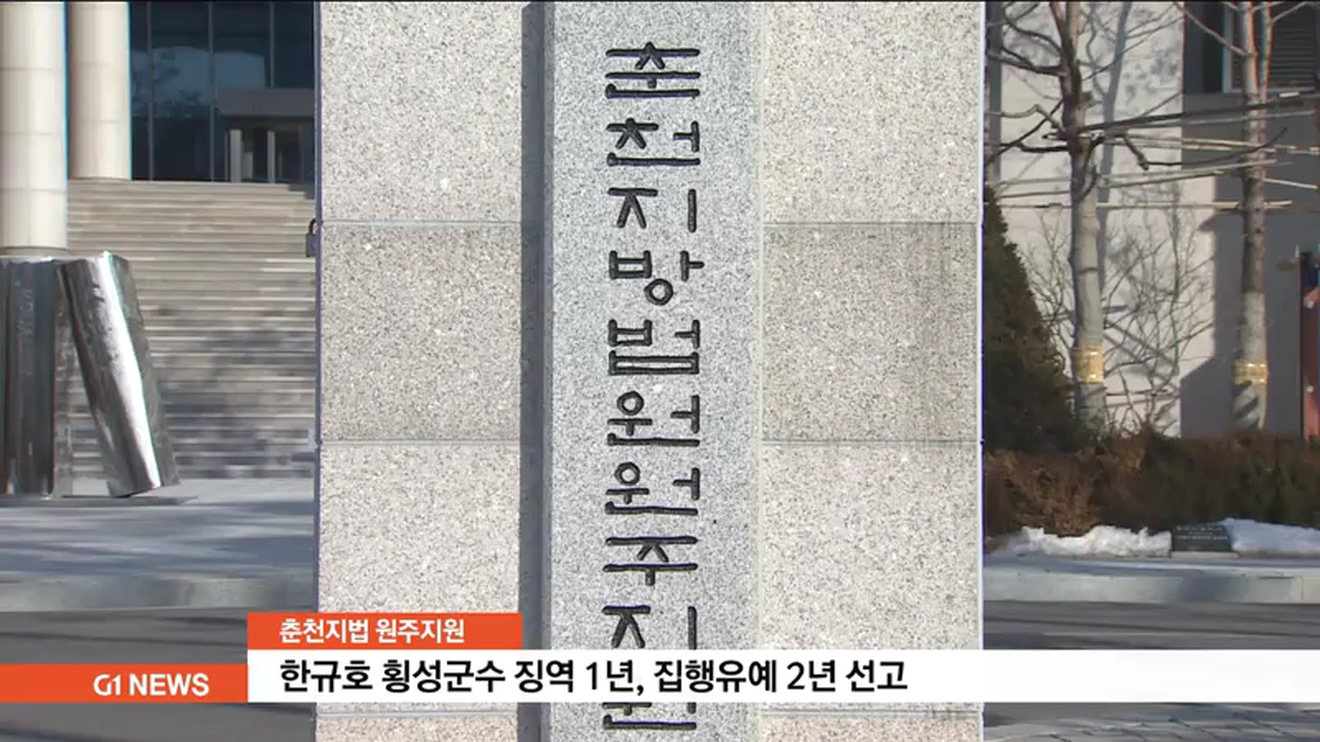 춘천지법 원주지원 형사1부는 한규호 횡성군수에 대한 1심 선고 공판에서 뇌물수수죄를 적용해, 징역 1년에 집행유예 2년과 벌금 천 400만원, 추징금 650여 만원을 선고했습니다.