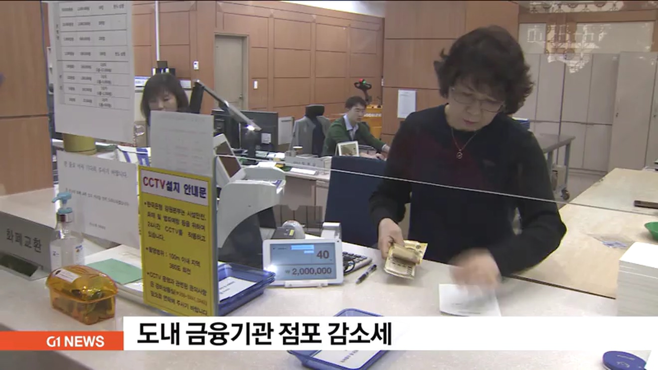 온라인 금융거래 등으로 도내 금융기관 점포 수가 매년 줄고 있는 것으로 나타났습니다.