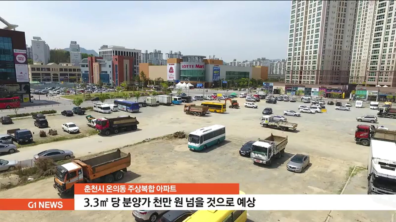춘천시 온의동에 들어설 주상복합 아파트의 3.3㎡ 당 분양가가 천만원을 넘을 것으로 전망됩니다.