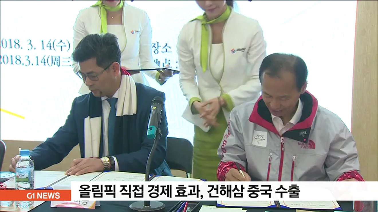 올림픽 강원상품관에 입점한 속초 한국야생해삼은 중국광저우 천박신식과기 유한공사와 협약을 맺고 올해 말까지 건해삼 93억 원 어치를 수출하기로 했습니다.