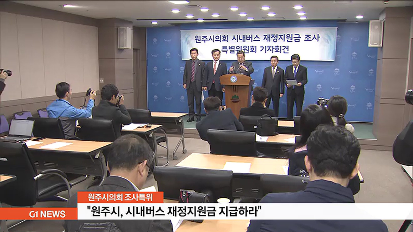조사특위는 오늘 원주시청에서 기자회견을 열고, "원주시가 지난 2012년부터 5년 동안 무료 환승과 카드 할인 등에 따른 재정지원금 36억 6천만원을 버스 업체에 미지급했다"며, 법적 문제가 없는 만큼 지급해야 한다고 밝혔습니다.