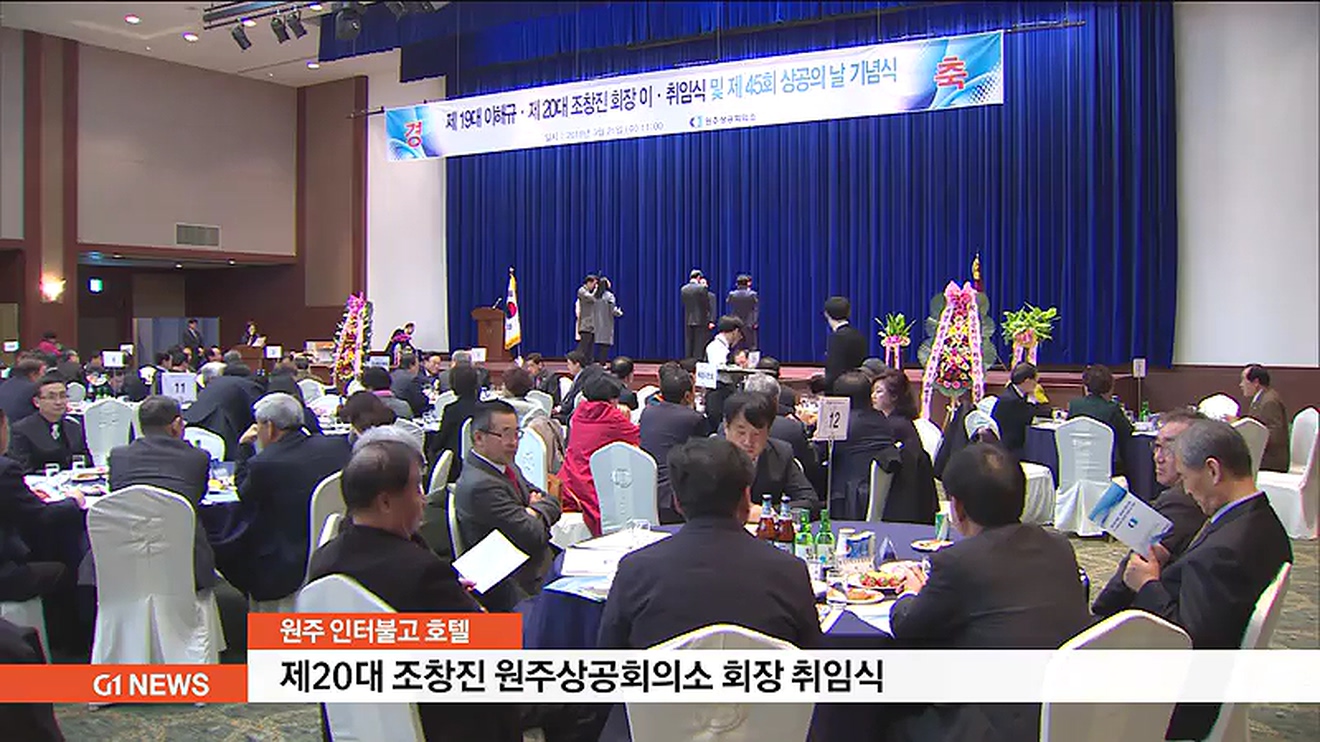 제45회 상공의 날 기념식과 함께 열린 취임식에서 조창진 회장은 기업하기 좋은 환경을 만들고, 원주시와 횡성군이 유기적인 협력을 통해 지역발전에 힘을 쏟겠다고 밝혔습니다.