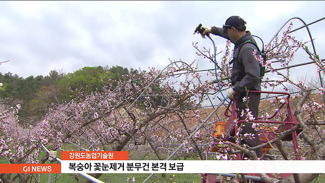 강원도농업기술원은 오늘(26일) 복숭아 꽃눈 제거용 분무건 기술이전 시연회를 열고, 춘천 등 전국 12개 지역을 대상으로 분무건 300여개를 보급할 계획입니다.