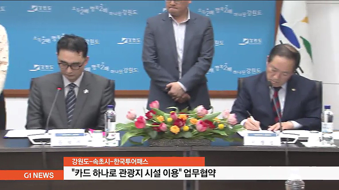 강원도와 속초시, 한국투어패스는 도청에서 스마트 관광시티 시범도시 조성의 전 단계인 '강원투어패스' 시범 사업을 위한 업무협약을 체결했습니다.