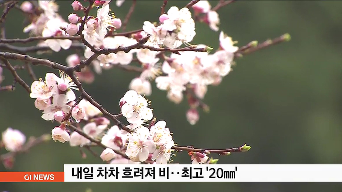 강원지방기상청은 내일 밤부터 모레 새벽까지 비가 내리는 지역에 돌풍과 함께 강한 비가 곳곳에 내리겠다며, 안전사고에 유의를 당부했습니다.