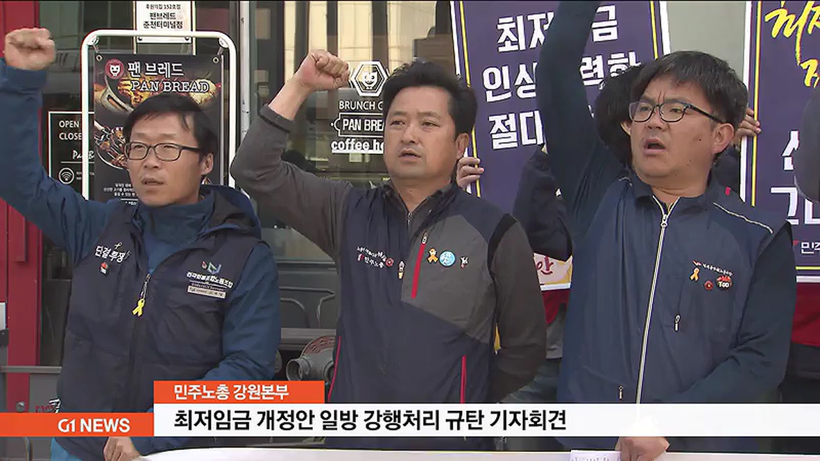 민주노총 강원지역본부는 오늘(11일) 더불어민주당 강원도당 앞에서 국회의 최저임금 법 개정 강행을 규탄하는 기자회견을 열었습니다.