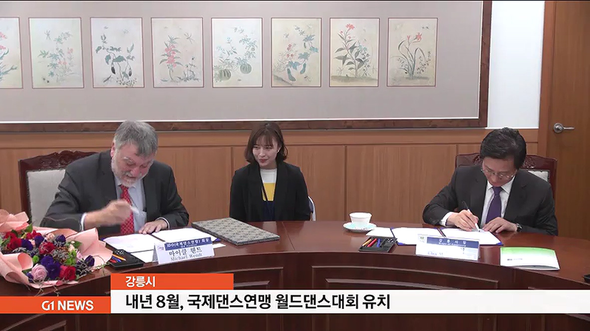 강릉시는 월드댄스대회를 운영하는 국제댄스연맹과 시청에서 이행 협약식을 갖고, 내년 8월 28일부터 나흘간 강릉 아이스아레나와 아트센터에서 국제 규모 대회와 아시아연맹총회 등을 개최하기로 했습니다.