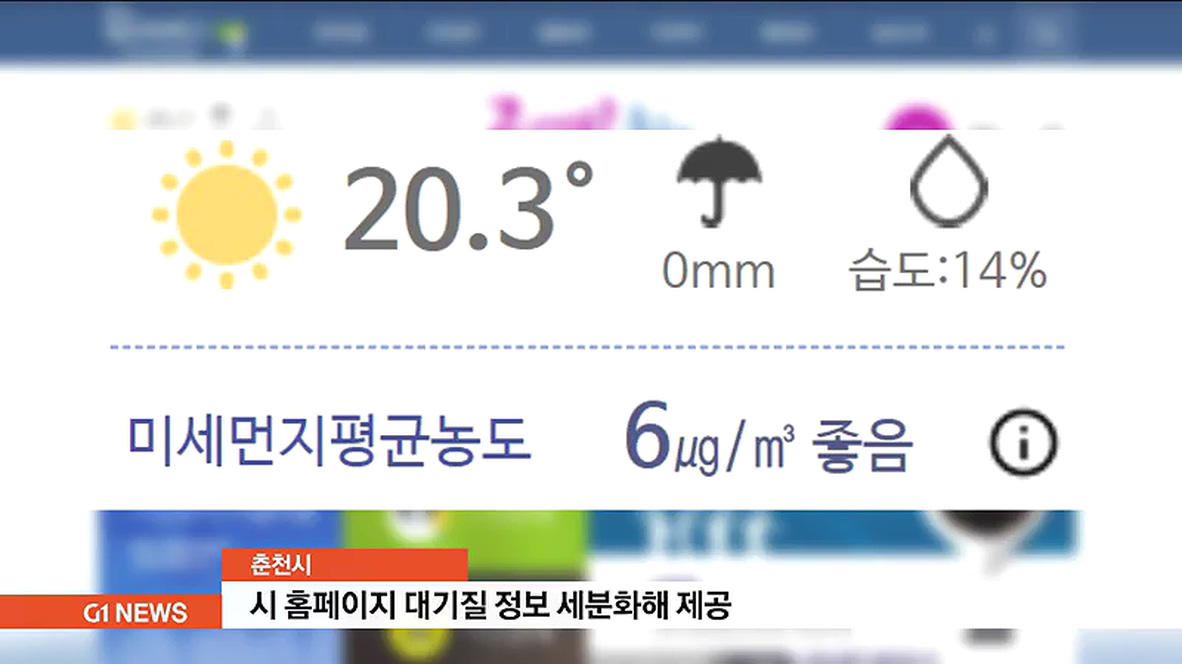춘천시 홈페이지를 통해 제공되는 실시간 대기질 정보가 허술하다는 어제 G1 보도와 관련해, 춘천시가 시정 조치했습니다.