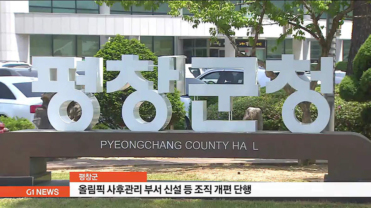 평창군은 올림픽추진단과 올림픽운영과를 폐지하고, 올림픽기념사업단과 시설 관리과를 신설하는 등 기존 3개 부서 10개 담당 40명을, 2개 부서 6개 담당 24명으로 재배치했다고 밝혔습니다.