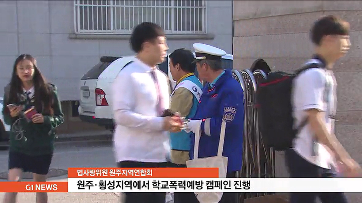 춘천지검 원주지청과 법사랑위원 원주지역연합회는 오늘 원주와 횡성지역 중.고등학교에서 학교폭력예방 캠페인을 벌였습니다.