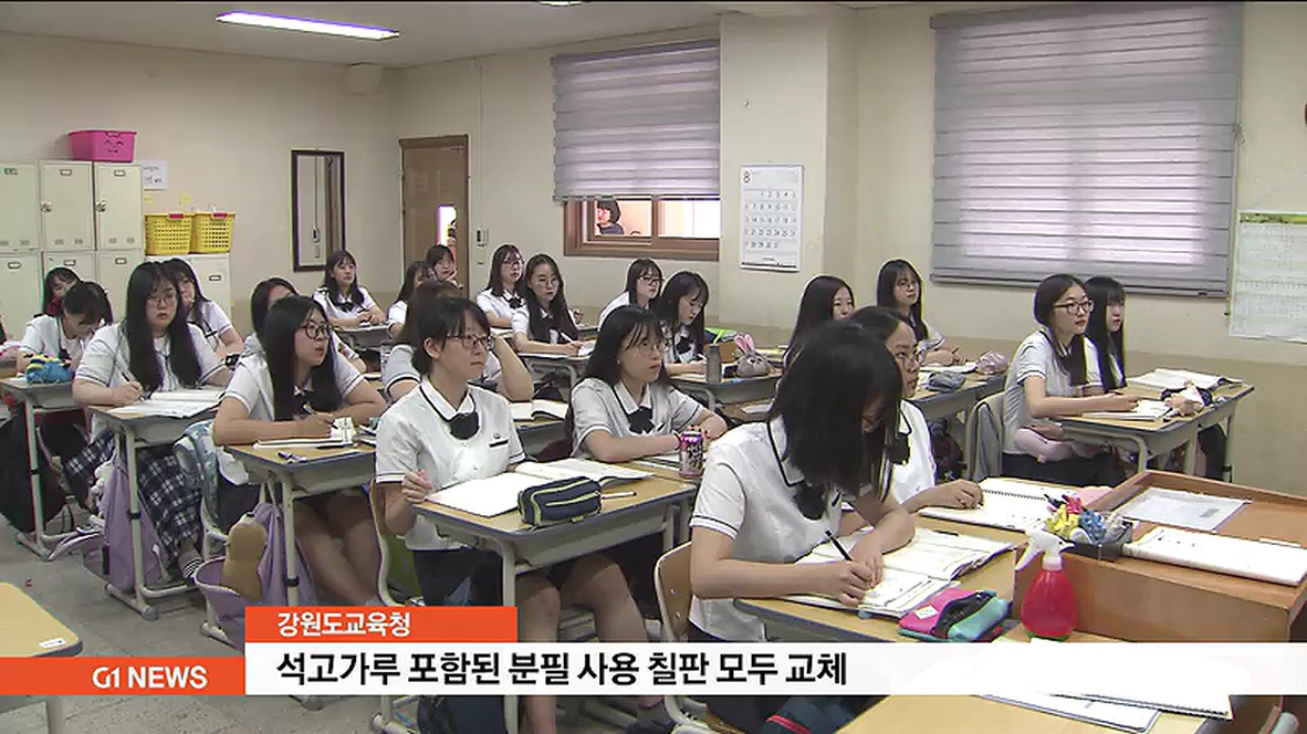 강원도교육청이 올해 일반 분필을 사용하는 칠판을 모두 교체하기로 했습니다.