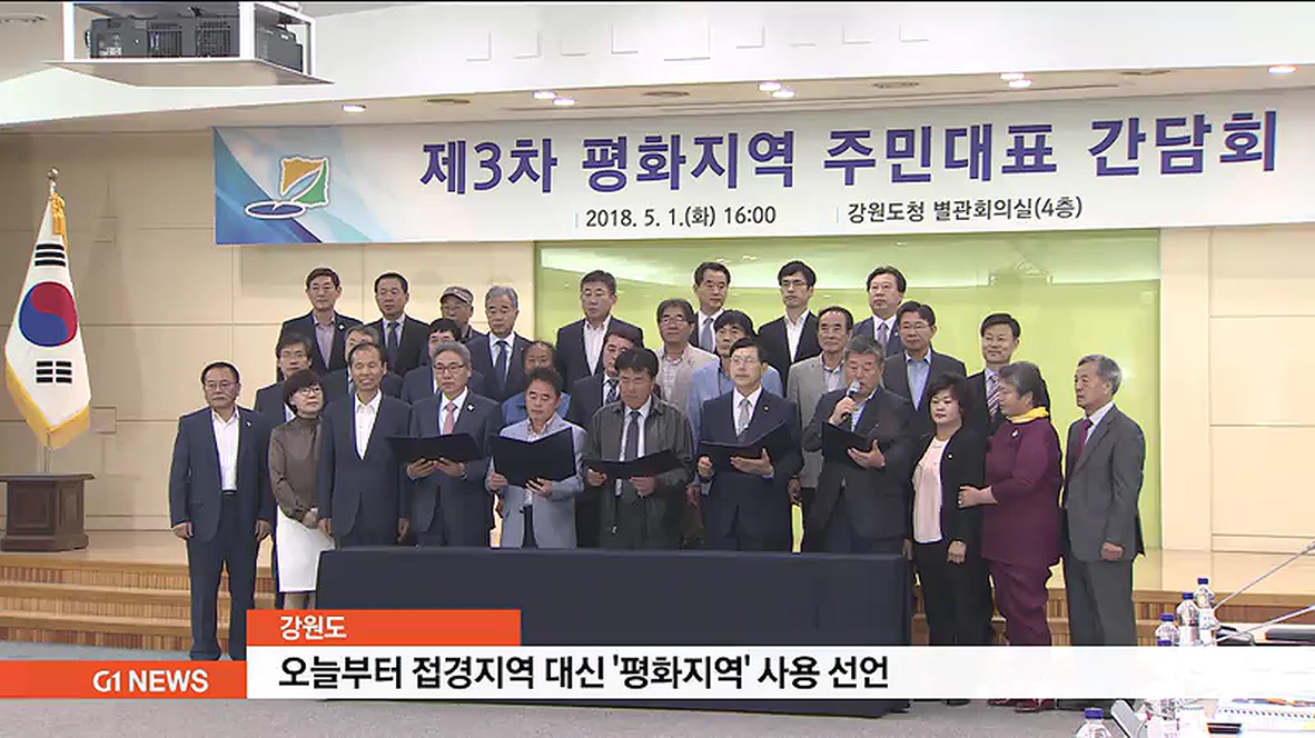 판문점 선언으로 한반도 평화시대가 열린 가운데, 강원도가 오늘부터 '접경지역'을 화합과 번영을 추구하는 '평화지역'으로 명칭 변경을 선언하고, 평화지역 활성화에 적극 나서기로 했습니다.