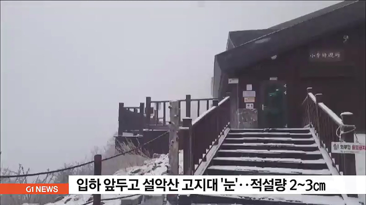 설악산국립공원사무소는 오늘 새벽, 대청봉과 중청, 소청 등 고지대에 2~3cm의 눈이 내렸다고 밝혔습니다.