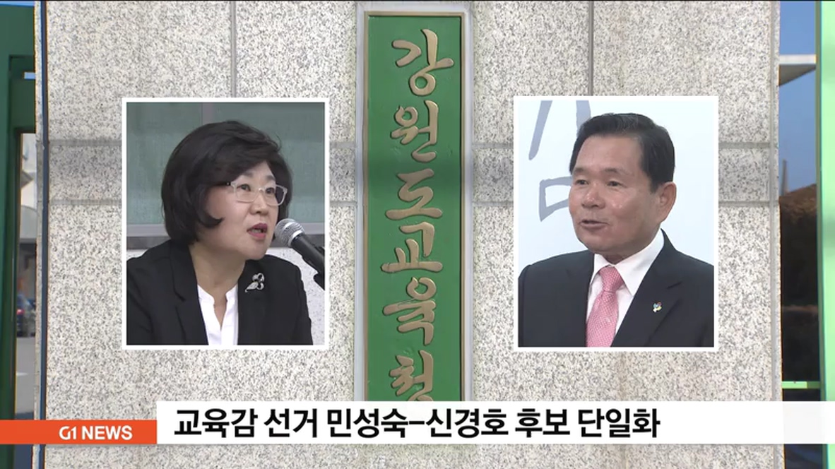 강원도교육감 선거에 나선 민성숙 후보와 신경호 후보가 단일화에 합의하면서 교육감 선거가 4파전으로 치러지게 됐습니다.