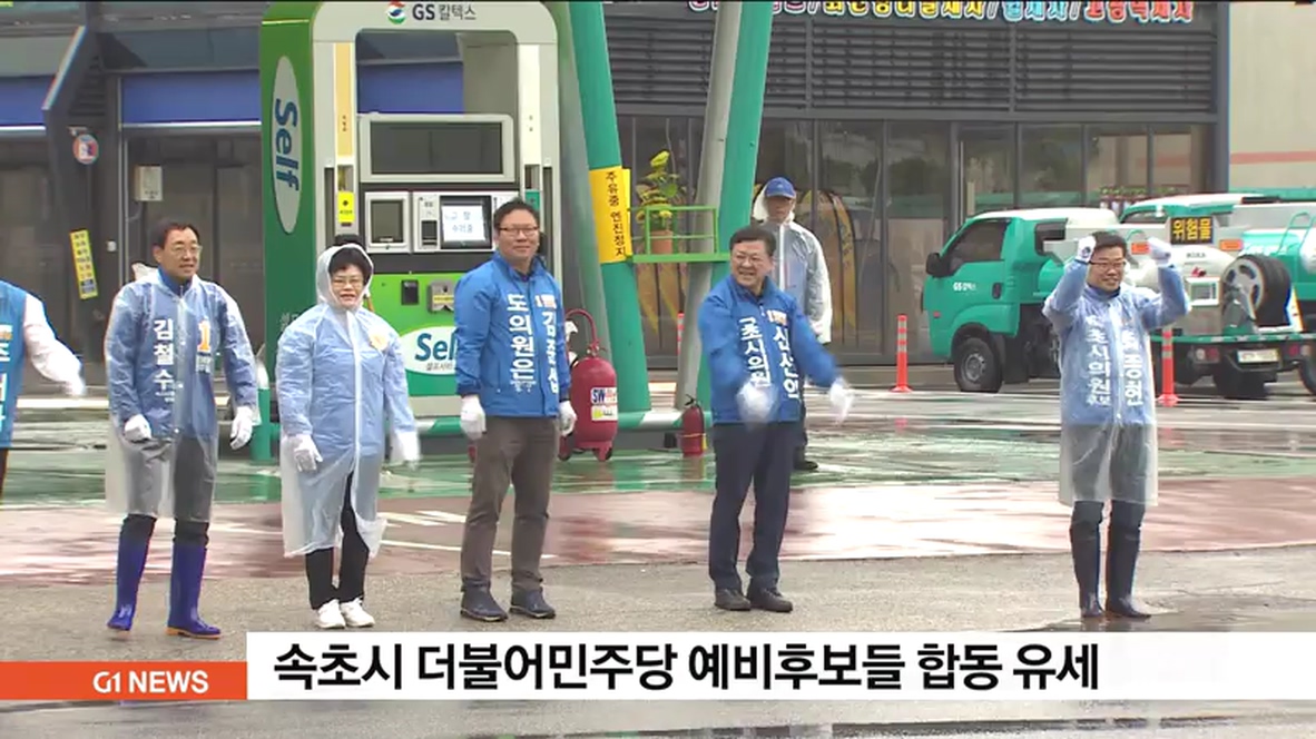 속초시 더불어민주당 소속 출마 예비후보들이 교동 아남프라자 앞에서 6·13지선 합동유세를 벌였습니다.