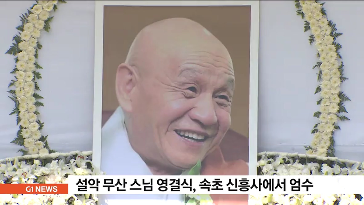 조계종 원로의원이자 신흥사 조실인 설악 무산 스님의 영결식이 오늘(30일) 설악산 신흥사 설법전에서 조계종 원로회의장으로 봉행됐습니다.
