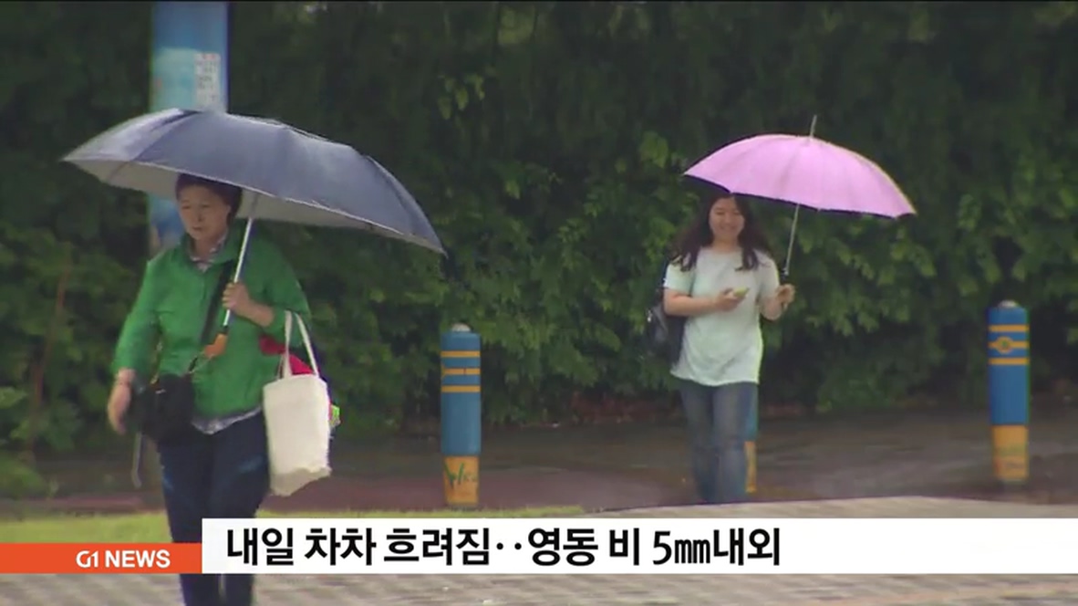 내일 강원도는 차차 흐려지겠고, 영동지역은 오전부터 비가 내리는 곳이 있겠습니다.