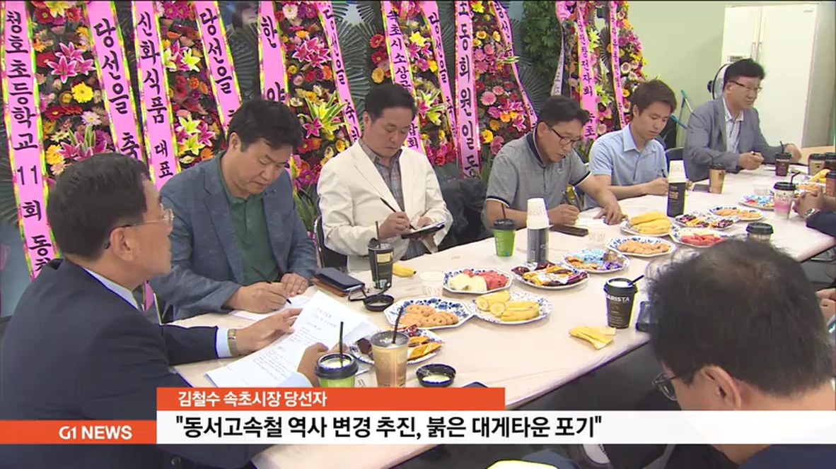김철수 속초시장 당선자가 동서고속화철도 역사 변경 추진과, 붉은 대게타운 건립 사업 포기 의사를 밝혔습니다.