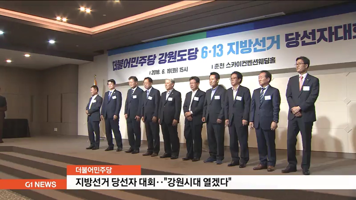 더불어민주당 강원도당은 오늘(19일) 춘천 스카이컨벤션에서 심기준 도당위원장과 이광재 전 강원도지사와 함께 시장군수와 도의원, 시군의원 등 당선자 140여 명이 참석한 가운데 당선자 대회를 개최했습니다.
