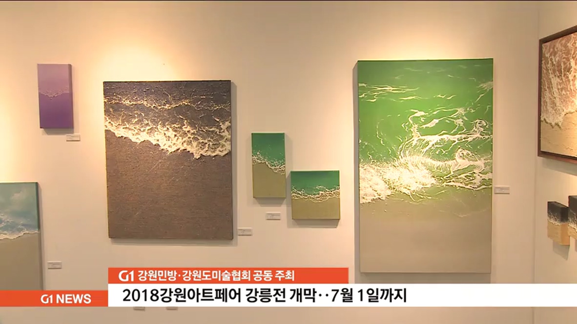 G1 강원민방과 강원도 미술협회가 미술문화 저변 확대를 위해 공동 주최한 2018 강원아트페어 강릉전이 강릉아트센터 전시실에서 개막해 다음달 1일까지 작품을 선보입니다.