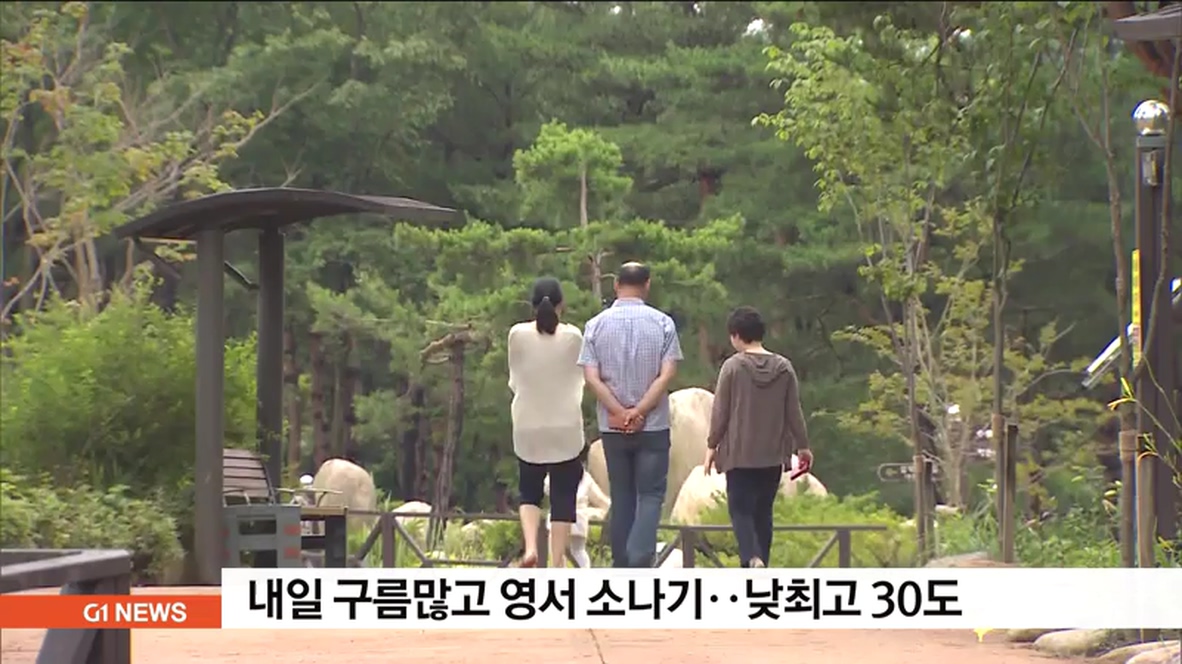 내일 강원도는 대체로 구름 많겠고, 영서지역은 오후부터 밤사이 소나기가 내리는 곳이 있겠습니다.