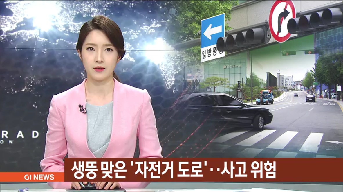 "차량들이 수시로 지나다니는 이곳은 일반 차로와 다를 바가 없지만 사실은 자전거 도로입니다."