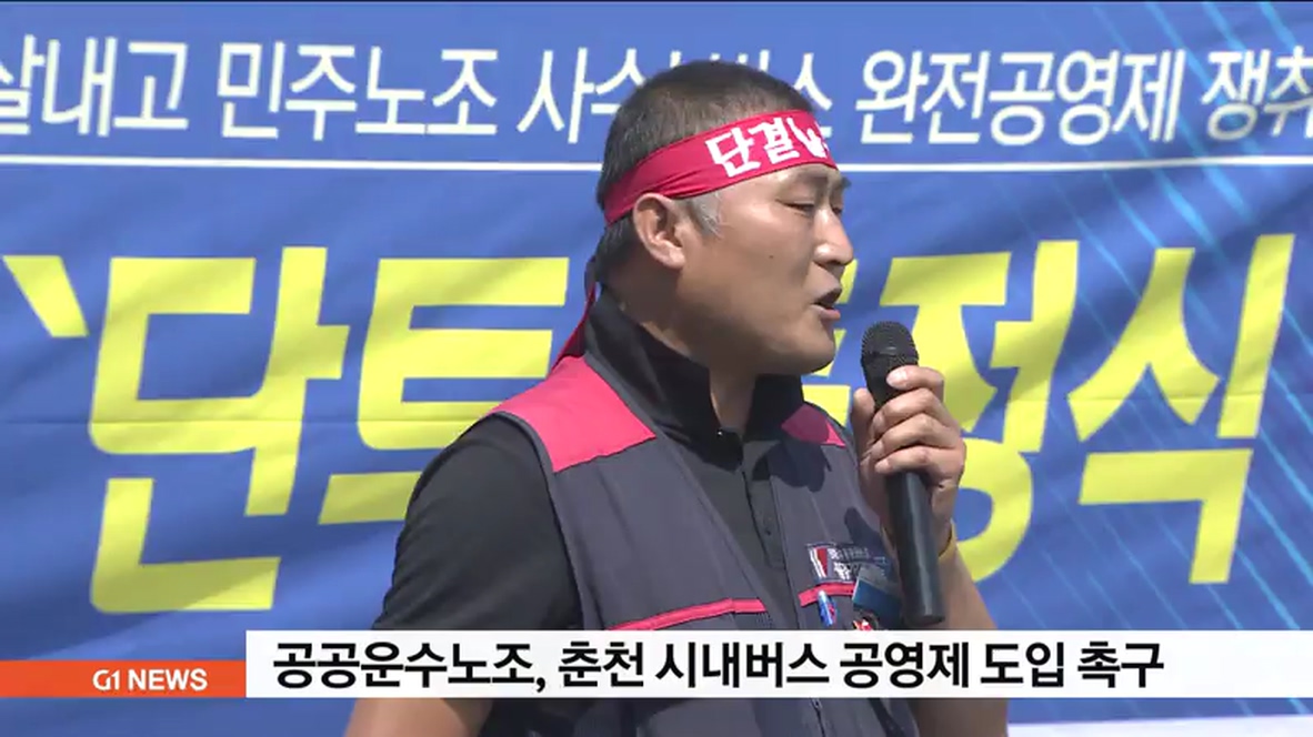 지부는 성명을 통해, '시내버스의 공공성을 강화하고 시민들의 안전하고 편리한 버스 이용을 위해선 춘천시가 시내버스 공영제를 도입해야 하고, 이를 위해 시민과 버스노동자, 시의회 등이 참여하는 지역사회 거버넌스를 구성해야 한다'고 주장했습니다.