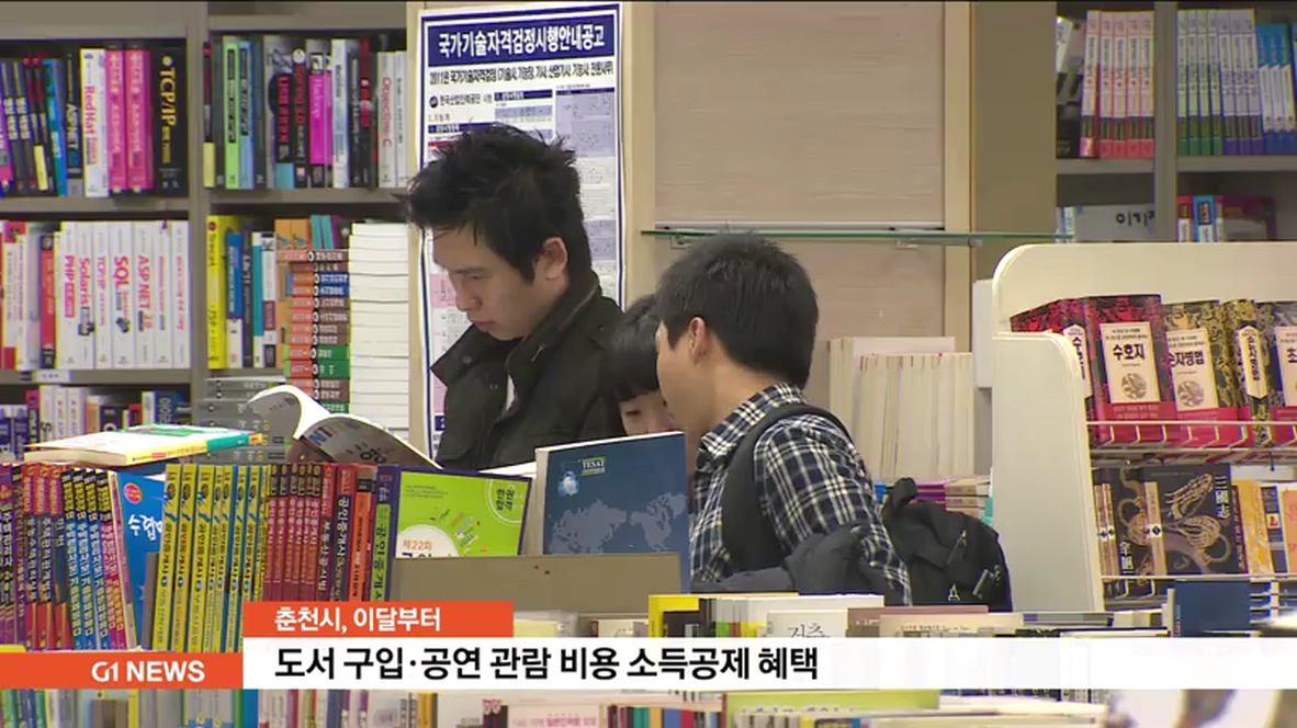 춘천시에 따르면, 이달부터 도서를 구입하거나 공연을 관람한 비용에 대해 최대 100만원까지 30%의 소득공제 혜택을 받을 수 있습니다.