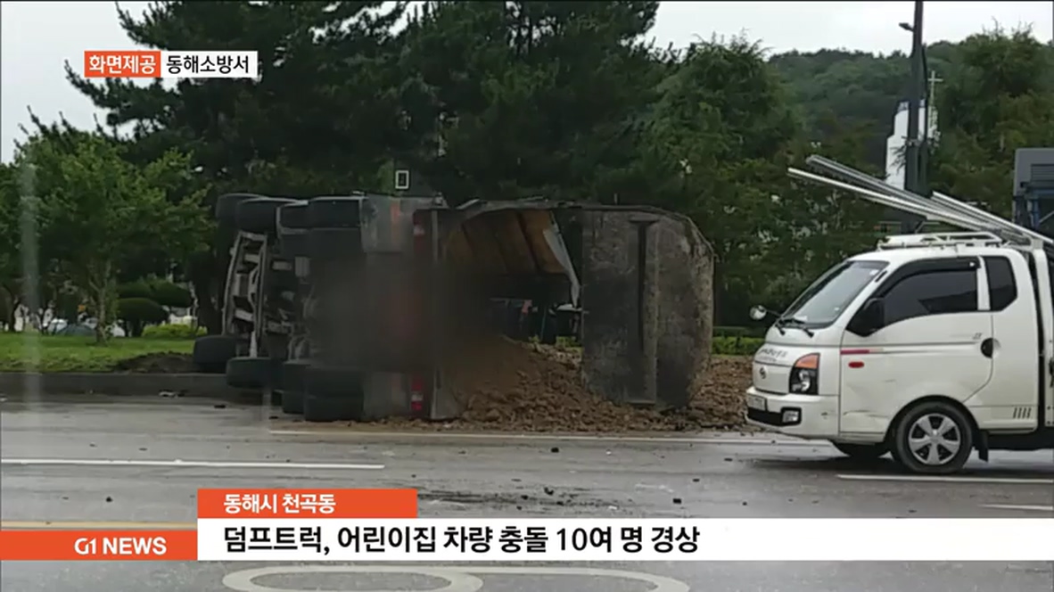 덤프트럭 어린이집 차량 충돌 10여명 경상