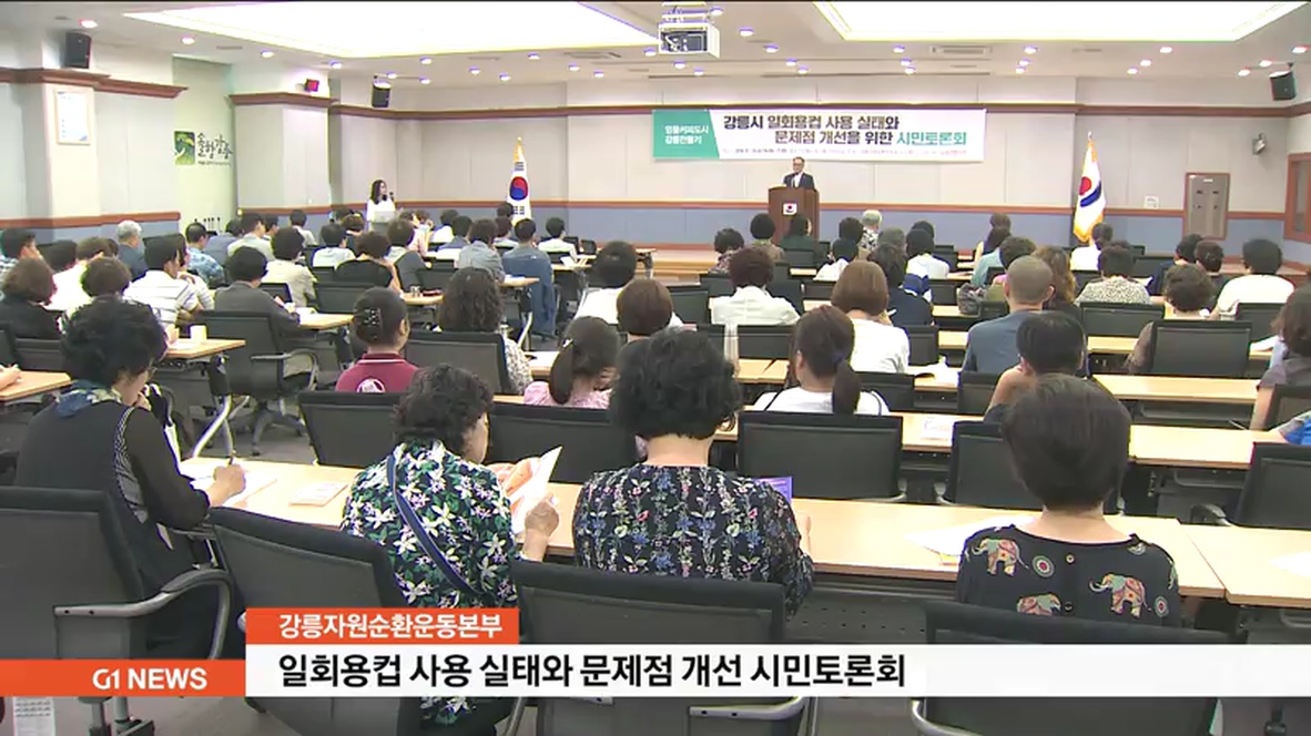 강릉자원순환운동본부는 오늘, 강릉시청 대강당에서 시민단체와 공무원, 시민 등 100여 명이 참석한 가운데 토론회를 열고, 일회용 컵 사용의 문제점과 해결 방안을 논의했습니다.