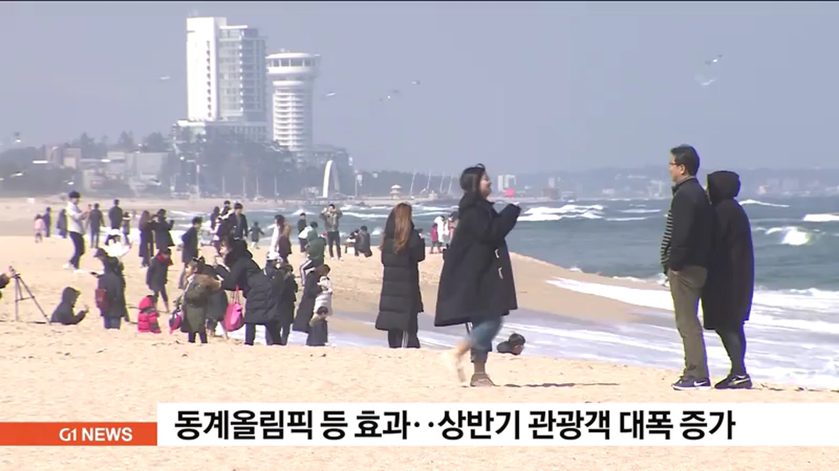 동계올림픽 효과 등으로 올해 상반기 관광객이 대폭 증가한 것으로 집계됐습니다.