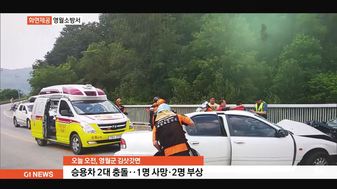 영월서 승용차 2대 충돌..1명 사망·2명 부상
