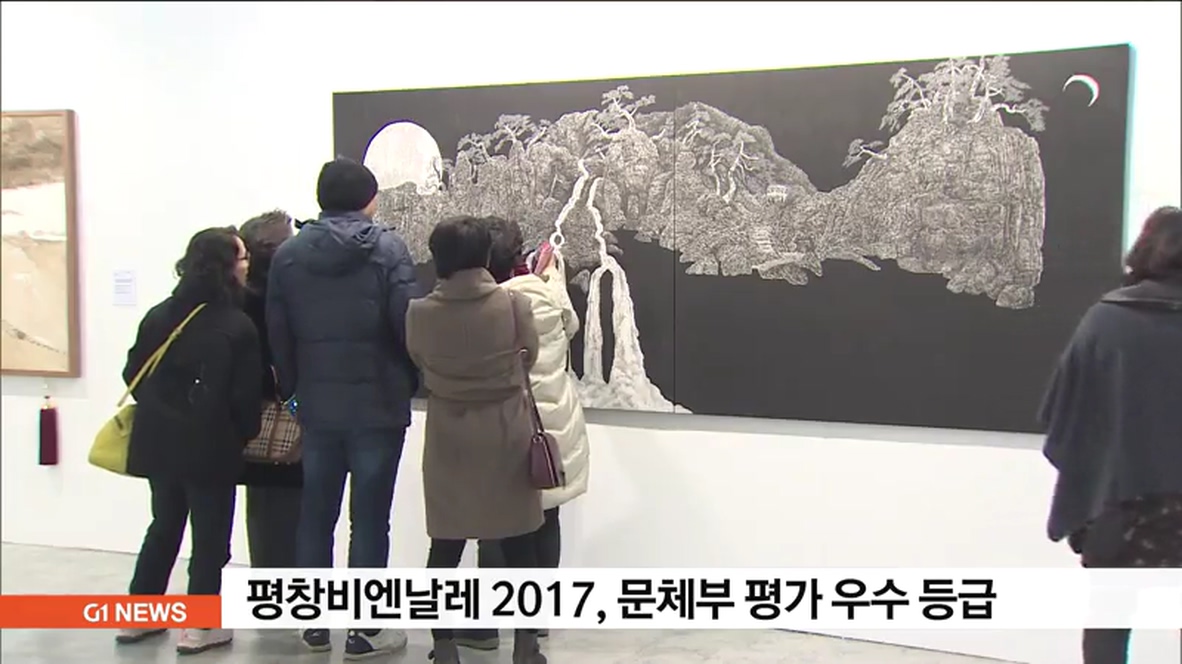 강원도는 지난해 2월 3일부터 23일간 강릉녹색도시체험센터에서 개최된 평창비엔날레 2017이 문체부 산하 예술경영지원센터에서 실시한 2017년 국고지원 시각예술분야 평가에서 81.5점으로 우수 등급을 받았다고 밝혔습니다.
